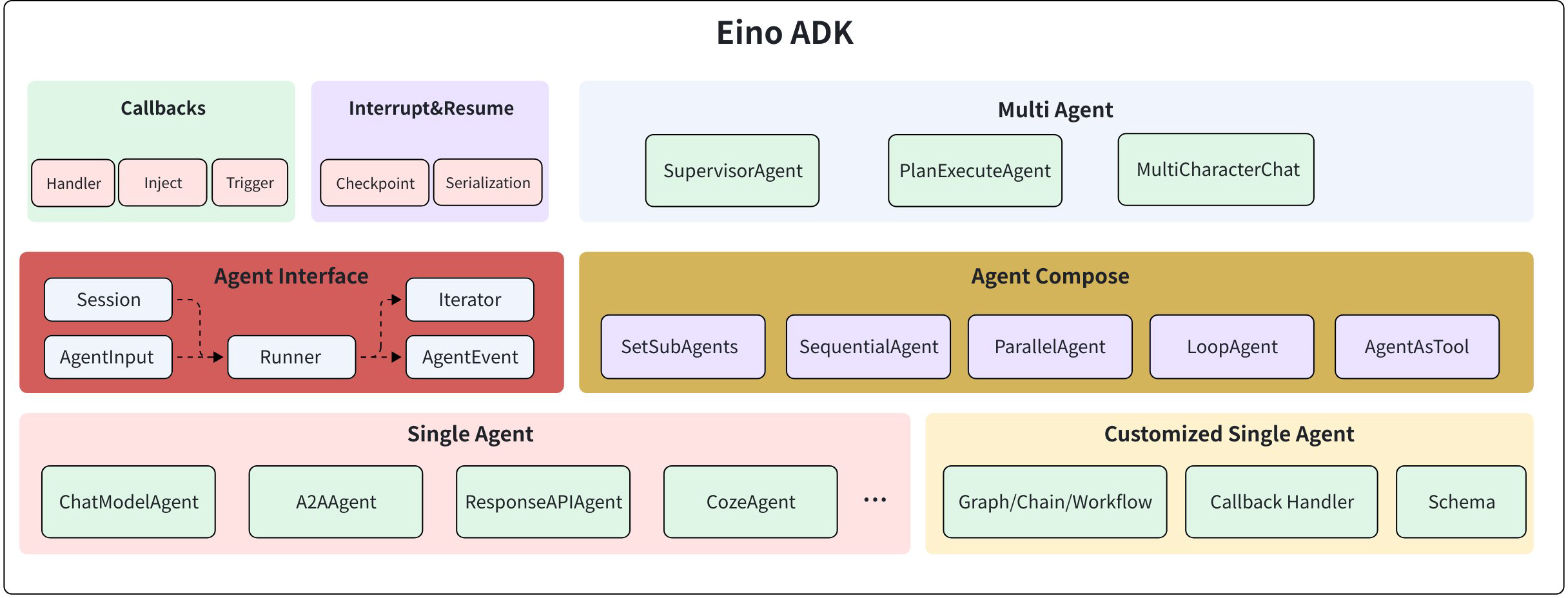Eino ADK 的整体模块构成,如下图所示: