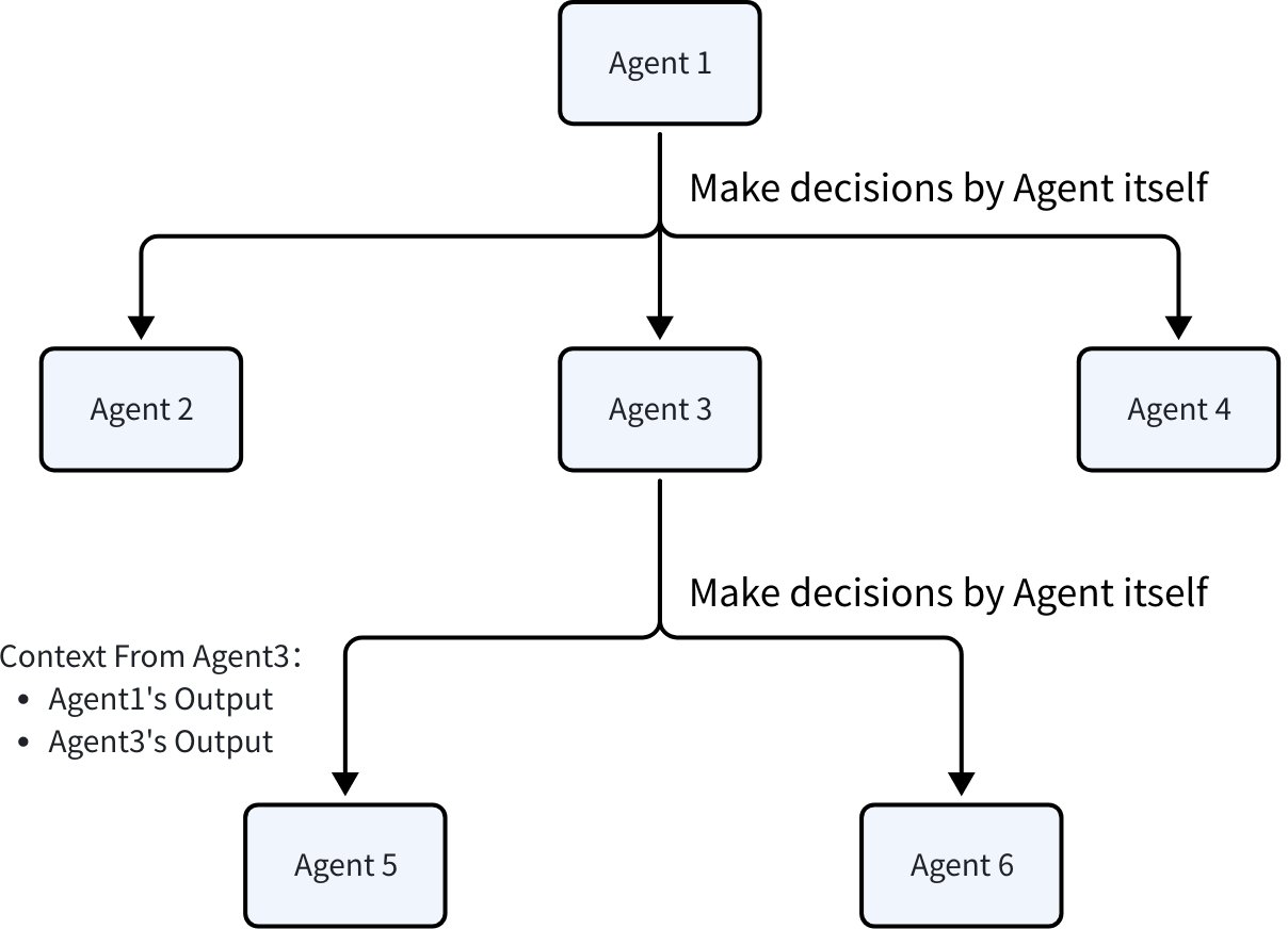 - 可采用 SetSubAgents 函数,构建 「多叉树」 形式的 Multi-Agent